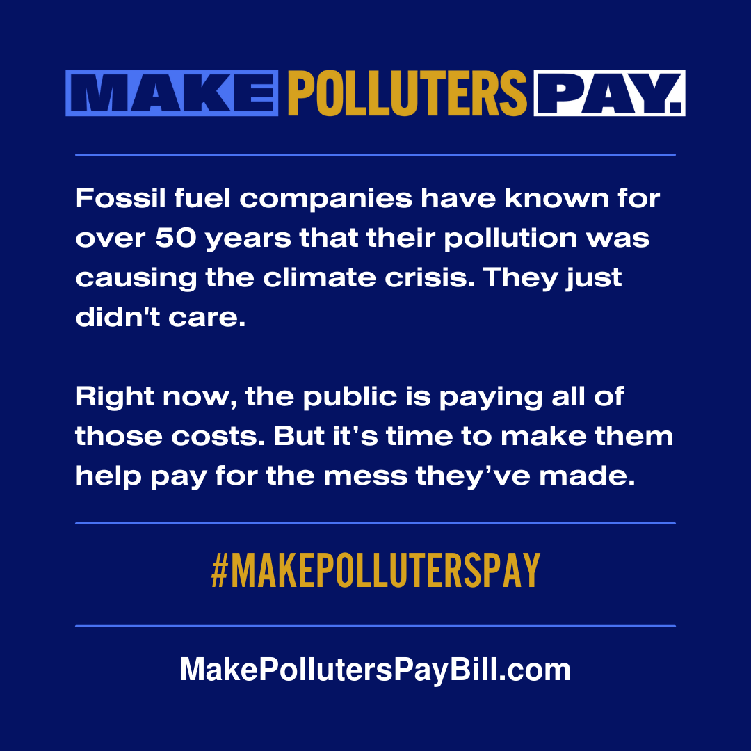 SPREAD THE WORD THAT IT’S TIME TO MAKE POLLUTERS PAY! Find us on Twitter and Instagram.Or share some of the images below on your own accounts. DOWNLOAD 24”x18” DOWNLOAD DOWNLOAD DOWNLOAD 18”X12” DOWNLOAD DOWNLOAD DOWNLOAD